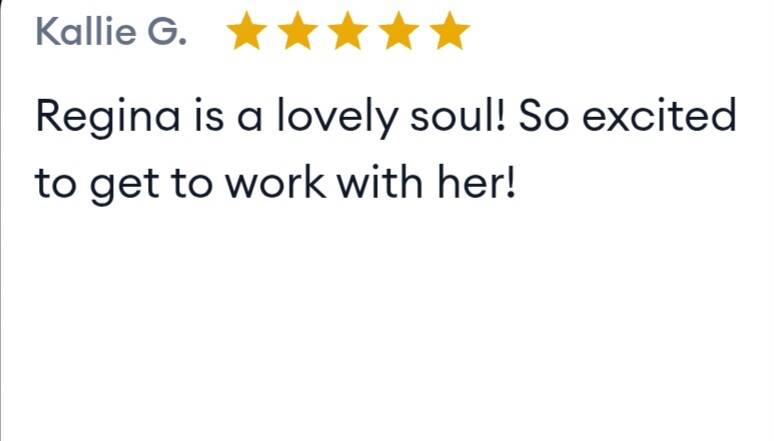 "Working with Regina has been life-changing experience. I've gained a deeper understanding of myself and new tools to overcome my obstacles in a easy energetic way. Regina has so much to offer anyone who maybe looking to deepen their spiritual, energetic or healing path!